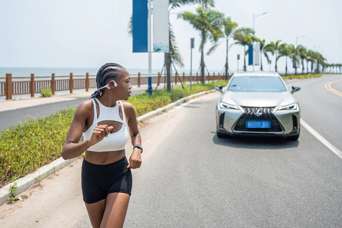 安全是我们的首要任务。我们的开放式设计可确保您的耳朵在户外时完全张开并对环境保持警觉。听到喇叭声和警告声,同时您的 GPS、音乐和播客继续播放。
