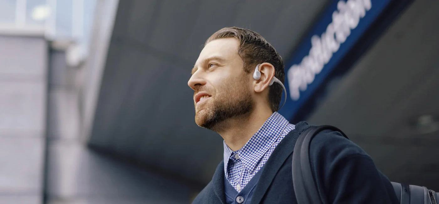附近的其他人可能能够隐约听到骨传导耳机发出的声音。但是,声音泄漏比传统耳机少得多。